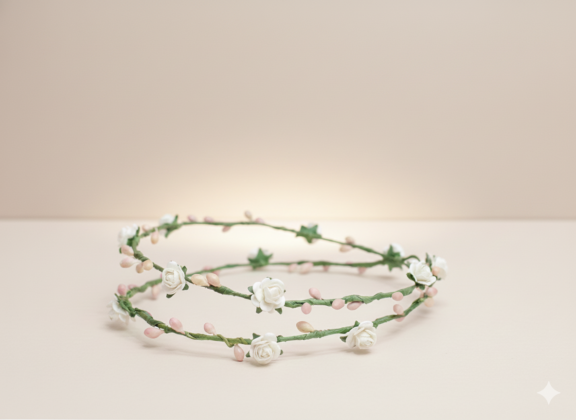 La Corona de Flores Boho de doble aro es la pieza mágica hecha a mano que enamora. Su diseño de doble casquete es la tendencia top de Comuniones 2026, perfecta también para bodas y arras. ¡Y eso no es todo! Diseñamos cualquier complemento a juego que desees: cinturones, apliques de zapatos, horquillas para hermanas y prendidos para hermanos. Consigue un look familiar perfectamente coordinado y lleno de mimo.